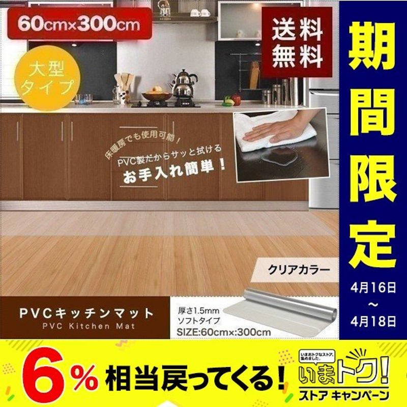 キッチンマット 300cm 透明 クリア 60cmx300cm 拭ける おしゃれ 台所 フロア ダイニング ビニール 床暖房対応 カット可能 Pvc 大型 ロング ずれにくい 送料無料 通販 Lineポイント最大0 5 Get Lineショッピング